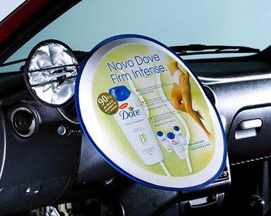 Protetor de volante dobrável , para carro, em Poliester ou TNT, fita de aço carbono, acabamento em viés colorido.