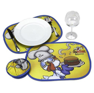 Jogo americano em Polipropileno, gravado em off set, cantos arredondados.