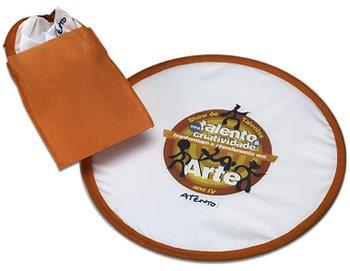 FRISBEE dobrável, em nylon ou poliéster, fita de aço carbono, acabamento em viés colorido.
