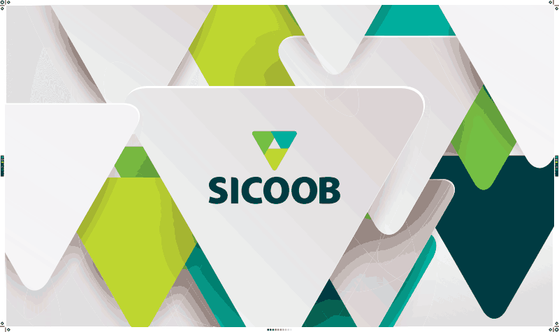 Telão dobrável, em poliéster ou TNT, fita de aço carbono, acabamento em viés colorido.