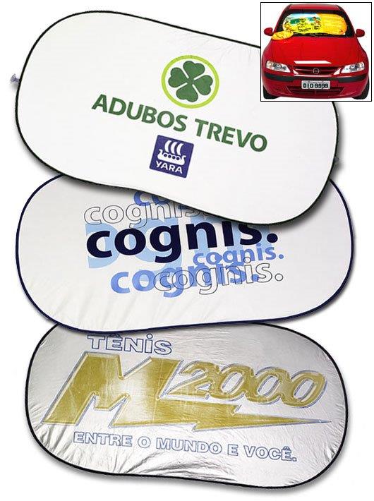 Tapa sol em duplo laminado, gravado em silk ou flexografia, acabamento em viés colorido.